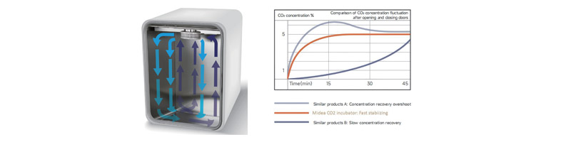 Incubadora de CO2 Midea Biomedical Smart Series con esterilización por calor seco a 140 °C/180 °C y adaptabilidad a bajo voltaje. Garantiza un entorno de cultivo estable y libre de contaminación para la investigación celular de precisión.